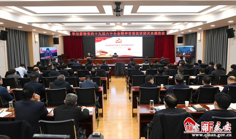 根据省委统一安排,12月6日,学习贯彻党的十九届六中全会精神省委宣讲团在我市举行报告会。省委宣讲团成员、甘肃政法大学教授马进作宣讲报告。市委书记张永霞主持报告会并讲话。