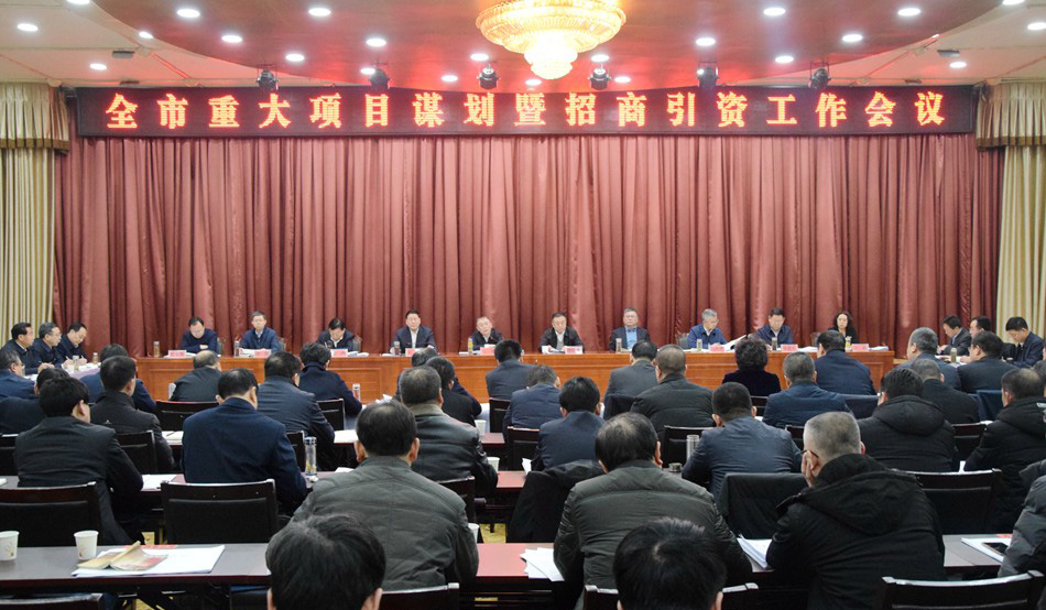 1月20日,全市重大项目谋划暨招商引资工作会议召开,市委书记王锐出席会议并讲话。他强调,全市各级各部门要深入贯彻落实习近平总书记视察甘肃重要讲话和指示精神,进一步增强抓项目促投资稳增长的责任感紧迫感,围绕全市经济发展的短板弱项,创造性地谋划一批高质量的重大项目,改进工作作风,积极主动作为,优化营商环境,加大招商引资力度,助推全市经济社会高质量发展。