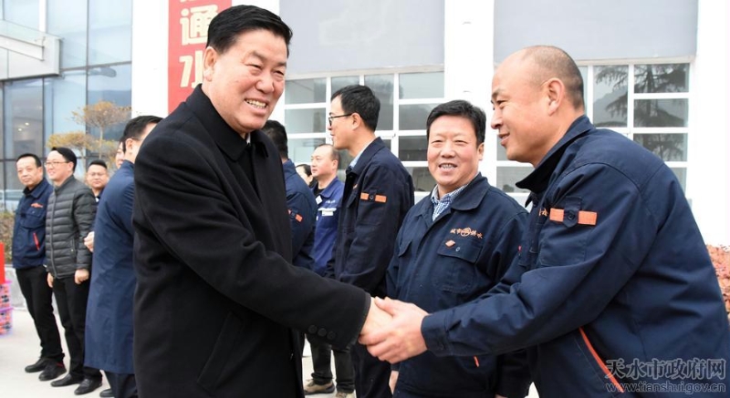 这一天是农历腊月二十九,大街小巷张灯结彩,家家户户喜迎春节。王军首先前往秦州热源厂和天水水务集团藉口水厂,实地察看设备运行、供暖供水质量等情况,看望慰问值守在一线的工作人员。他说,自从秦州热源厂建成投运、引洮供水工程通水以来,各项工作开展井井有条,全市人民的幸福指数节节攀升,我代表市委、市政府感谢大家。节日期间的供热供水保障尤为重要,希望大家继续发扬“辛苦一人,幸福万家”的精神,加强应急值守,强化科学调度,确保节日期间供暖、供水安全通畅。