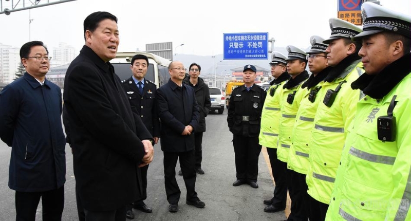 在天定高速天水西出口,王军亲切慰问了正在执勤的交警和公安特警,感谢他们过去一年为全市和谐稳定所作的贡献。他说,万家团圆时,你们舍小家为大家,体现了强烈的责任担当,希望大家继续坚守岗位,履职尽责,切实做好维稳保畅各项工作,为人民群众过一个平安祥和的春节全力保驾护航。