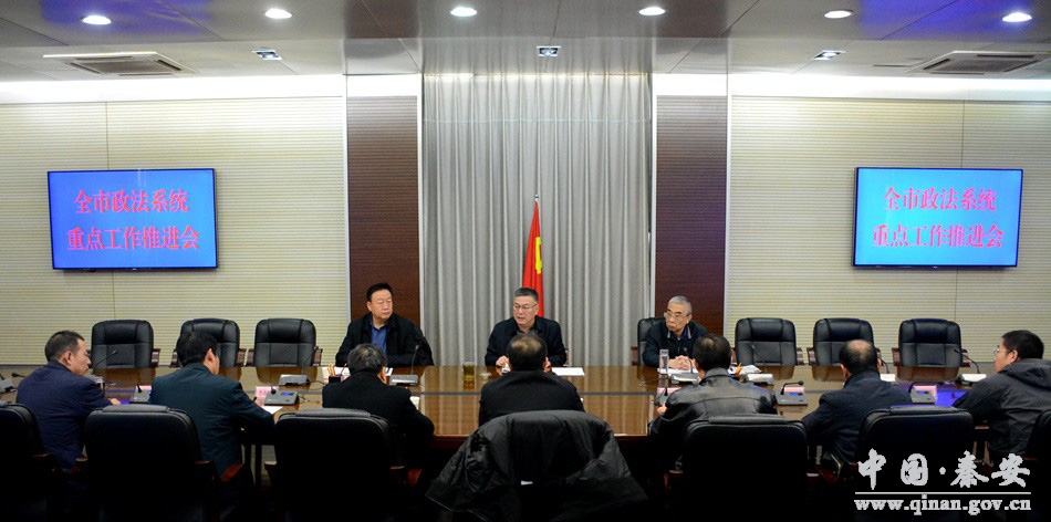 12月10日,天水市委常委、政法委书记蒲军主持召开全市政法系统重点工作推进会,传达市委常委会(扩大)会议精神,就政法系统做好当前矛盾纠纷排查、社会治安重点整治、公共安全防范等各项重点进行了全面安排部署。