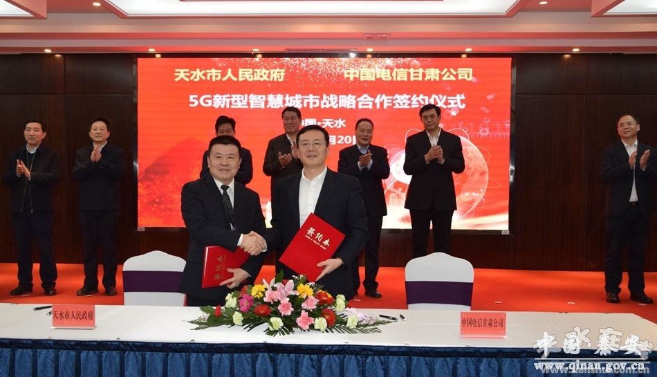 2月20日,天水市政府与中国电信甘肃公司签署《5G新型智慧城市战略合作协议》。根据协议,中国电信甘肃公司将把天水作为“5G新型智慧城市建设”重大投资项目落地实施的重点区域,计划在2019年至2023年投入约14.7亿元用于天水市5G新型智慧城市建设,重点推进5G网络建设,加快5G应用在公共服务、公共安全、城市管理、智慧产业等领域的落地实施。