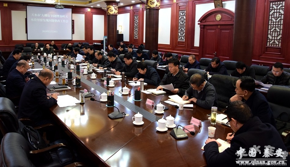 2月20日,全市“大棚房”问题暨秦岭天水段督察发现问题整改工作会召开。会议强调各县区、各有关部门要进一步明确工作任务,靠实工作责任,坚决彻底、不折不扣、按时按点完成“大棚房”排查整治和秦岭天水段督察发现问题整改工作任务。