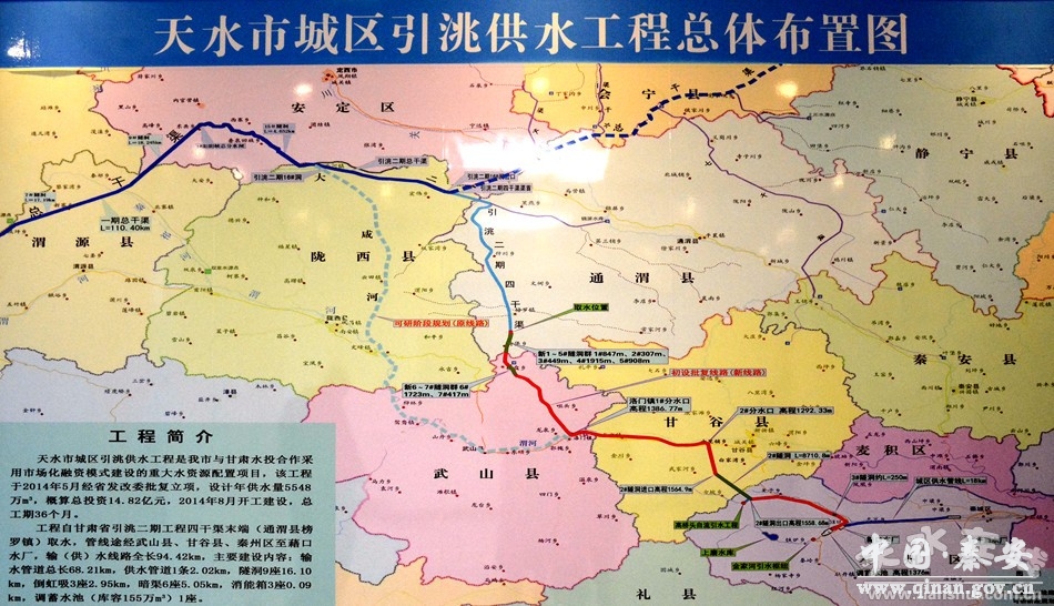 天水市城区引洮供水工程是依托省引洮供水二期工程实施的跨流域水资源配置项目,也是全省第一个采用市场化融资模式运作的重大水资源项目。项目概算总投资19.12亿元,年供水总量5548万立方米。工程自通渭县榜罗镇境内的引洮二期四干渠末端取水,途经武山县、甘谷县进入秦州区关子镇、藉口镇至杨家湾调蓄水池到藉口水厂,输水线路全长95.16公里。截至目前,全线工程累计完成94.88公里,工程建设进入收官阶段,运行准备工作有序推进。