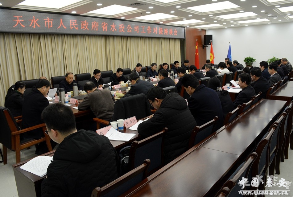 在15日下午召开的座谈会上,王军一行与省水投公司就加快工程进度、后续管理运营等事宜进行了对接交流。王军指出,天水城区引洮供水工程是我市近年来实施的最大民生水利工程,建成后将彻底解决城区突出的水资源供需矛盾,对天水经济社会发展意义重大。早日喝上干净甘甜的洮河水,不仅是天水人民期盼已久的事,更是天水市委、市政府对全市人民作出的庄严承诺。各有关方面一定要统一思想、提高认识,科学有序组织施工,合力解决困难问题,在保证安全和质量的前提下,全面加快建设进度,争取工程早日建成发挥效益。要细化管理方案,层层落实责任,重视做好工程设施保护,加强管道沿线标志标识设立,抓好水务一体化合作经营,科学核定水价,探索建立统一协调、运转高效的管理运营体制,确保工程安全稳定高效运行。相关部门和县区要进一步加强与省水投公司、省引洮建管局等单位的沟通对接,构建协调联络机制,同时提早研究解决秦安、甘谷、武山三县的供水问题,确保工程早日惠及更广大人民群众。