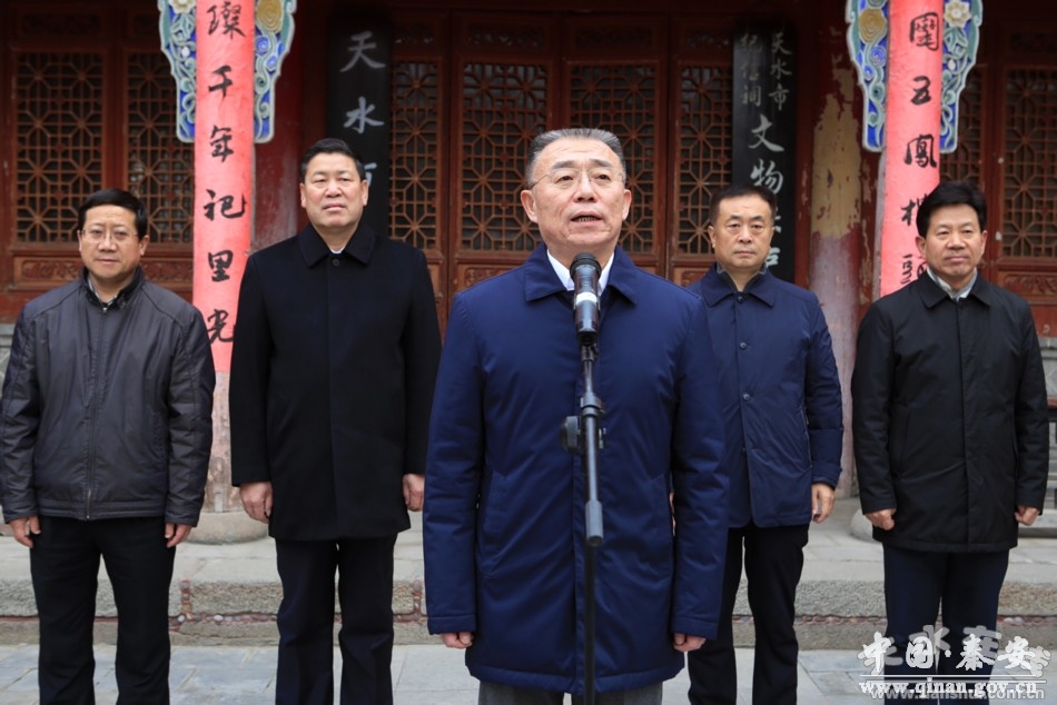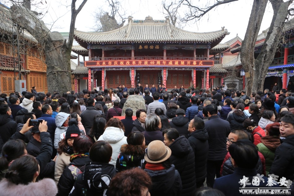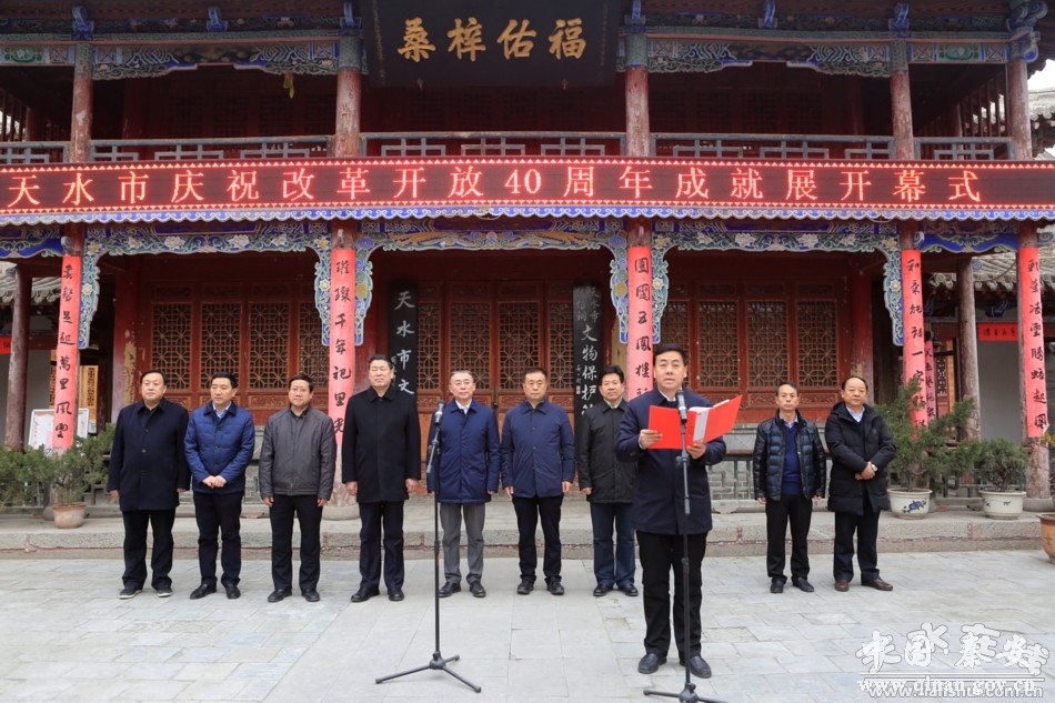 逯克宗主持开幕式。他在讲话时说,40年来,我市积极顺应改革开放的历史大潮,谱写了一幅幅转型跨越发展的绚丽篇章。40年来,在历届市委、市政府的正确领导下,全市上下解放思想,锐意创新,励精图治,攻坚克难,经济社会发生了翻天覆地变化。特别是党的十八大以来,我市以习近平新时代中国特色社会主义思想为指导,深入贯彻落实习近平总书记视察甘肃重要讲话和“八个着力”重要指示精神,牢固树立和贯彻新发展理念,统筹推进“五位一体”总体布局和“四个全面”战略布局,经济社会发展质量不断提升,改革开放不断向纵深推进,城乡规划体系日益完善,生态综合治理及城乡建设成效显著,新型城镇化速度和质量同步提升,美丽乡村建设多点开花,人居环境明显改观,区域交通枢纽地位更加凸显,就业、住房、社保等热点难点问题有效缓解,保基本、兜底线、促公平的民生安全网更加牢靠,经济社会持续健康发展,更好地满足全市人民日益增长的美好生活需要,在天水发展的历史上谱写了更加浓墨重彩的崭新篇章,在全面建成小康社会的征程上迈出了更加坚实的步伐。