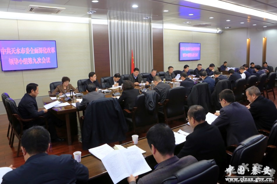 12月6日下午,天水市委书记、市委全面深化改革领导小组组长王锐主持召开市委全面深化改革领导小组第九次会议。王锐强调,各部门要紧紧围绕年初确定的计划安排,加强工作调度,注重查漏补缺,确保全面完成今年的改革目标任务。