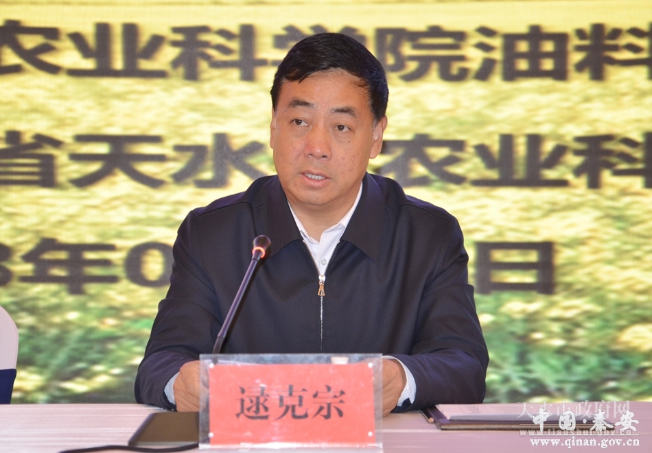 逯克宗在致辞中指出,天水是传统农业大市,是西北农作物生长最适宜的地区之一,冬油菜是天水主要经济作物,在我市产业助推精准扶贫方面具有重要意义。市农科所开展种质资源创新与利用研究、冬油菜品质改良及丰产栽培技术研究等工作。育成的天油系列新品种在我省冬油菜产区得到广泛种植,为当地油菜主栽品种,并被引到陕西、新疆、北京、内蒙、山西、辽宁等地适宜地区示范种植,年推广面积100多万亩,逐步形成了育、繁、推一体化的科技体系产业格局。