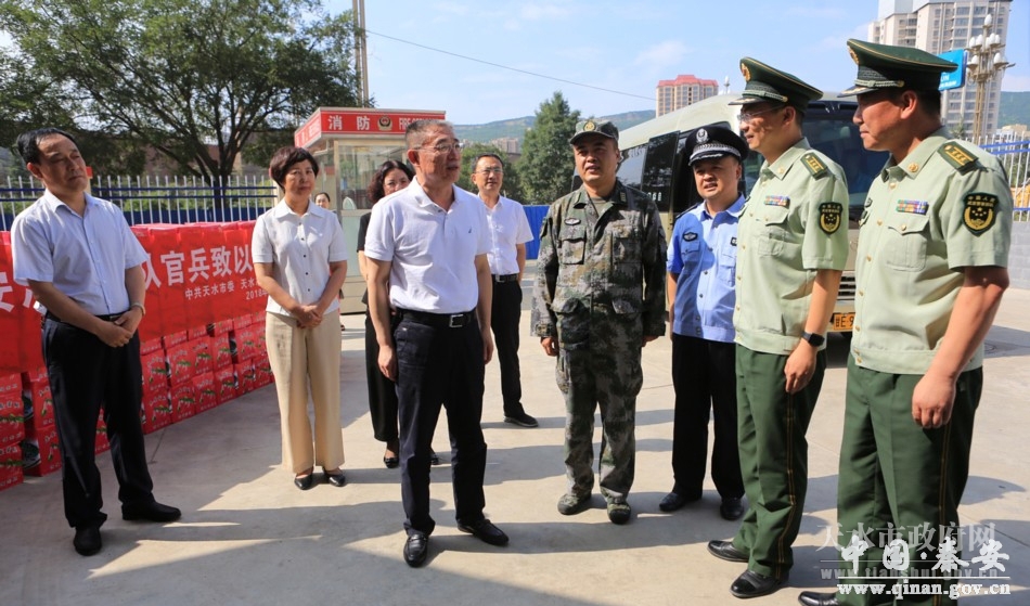 在“八一”建军节来临之际,7月30日,天水市委书记王锐来到部分驻市部队,看望慰问全体官兵,向他们表示节日问候和良好祝愿,并对驻军部队官兵支援我市经济建设、维护社会稳定所做的贡献表示衷心的感谢。