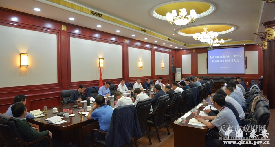 市委常委、宣传部长蒲军主持会议。副市长程伟东,市政府秘书长王祥林,市直相关部门及各县区政府主要领导、分管领导出席会议。会上,水务局负责同志宣读了《天水市加快推进农村饮水安全巩固提升工程实施方案》。