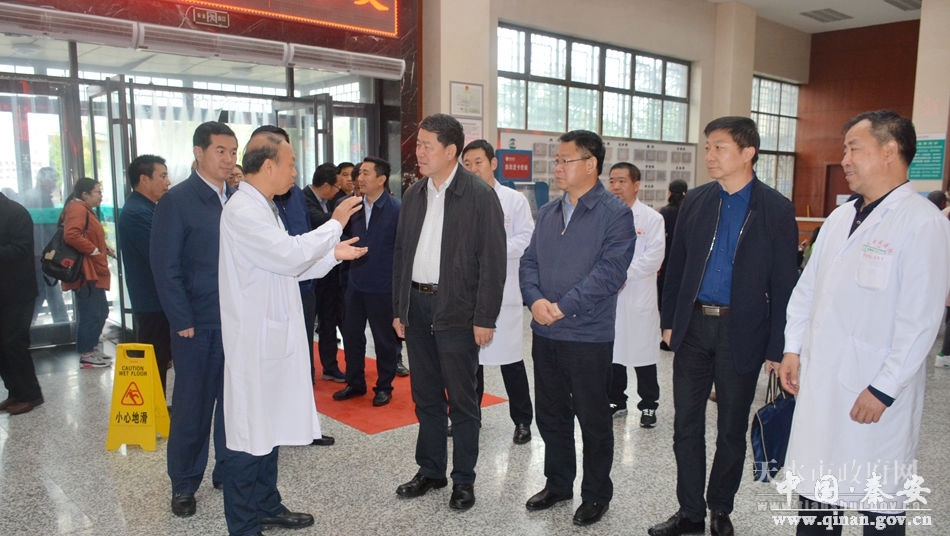 5月10日,市委副书记、市长王军带领市发改、财政、国土、环保、建设、卫计、规划和秦州区主要负责人到天水市中医院,就中医药传承创新工程——中医院内科综合大楼项目进行检查调研。他强调,要认真贯彻党的十九大关于中医药事业发展的精神,积极抢抓大有可为的历史机遇,立足当前,着眼长远,全力落实好中医药传承创新项目,努力通过项目的实施,推动全市大建康产业发展和中医药产业做大做强。