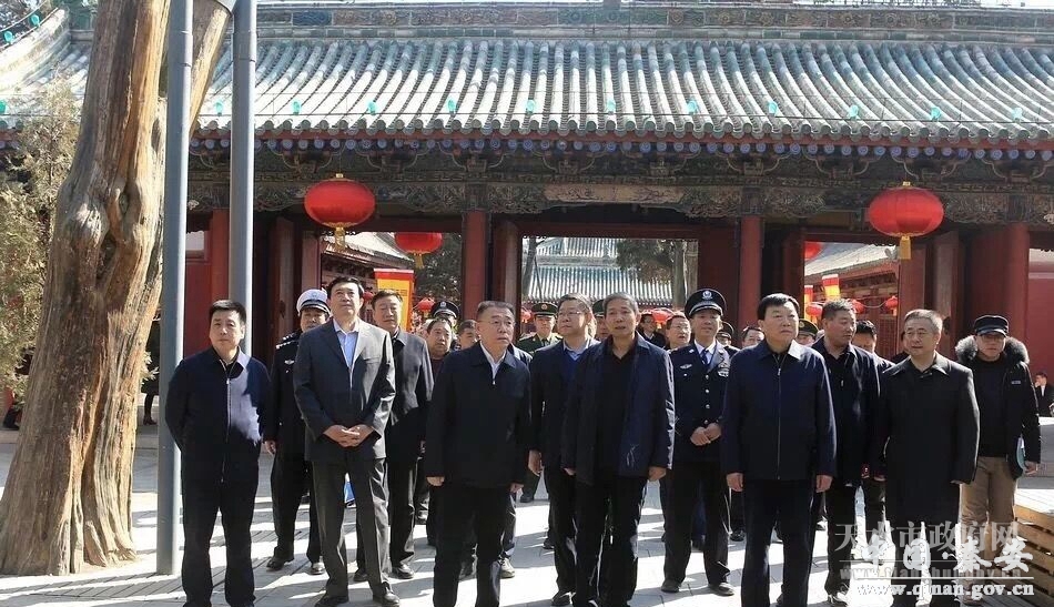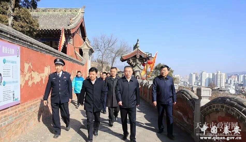 2月22日下午,市委书记王锐带领市直及驻市有关部门负责同志,对伏羲庙和玉泉观春节文化庙会准备工作进行了督促检查。王锐强调,市、区两级和相关部门要进一步强化安全意识,靠实工作责任,细化工作方案,用钉钉子的精神把各项工作做细做实做到位,确保春节文化庙会活动安全有序进行。