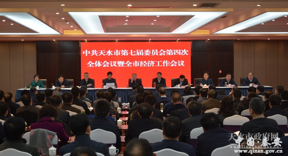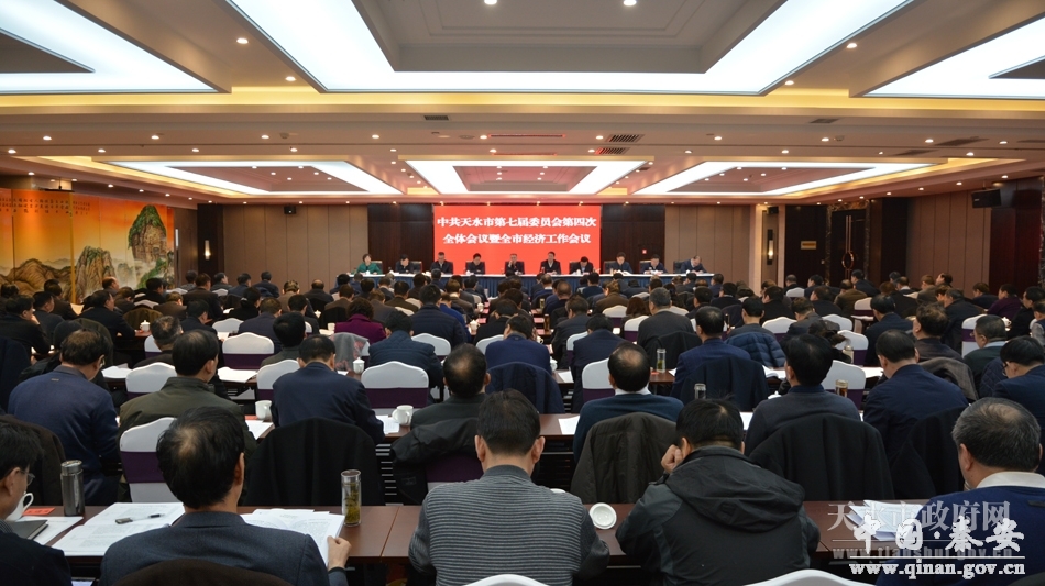 2月8日,市委七届四次全体会议暨全市经济工作会议在天水宾馆召开。会议深入学习贯彻习近平新时代中国特色社会主义思想和党的十九大精神,全面贯彻落实中央经济工作会议和省委十三届四次全体会议暨省委经济工作会议的决策部署,总结过去一年的工作,分析当前面临的形势,安排部署今年的任务,审议通过了《中共天水市委2017年度落实全面从严治党主体责任工作情况的报告》。