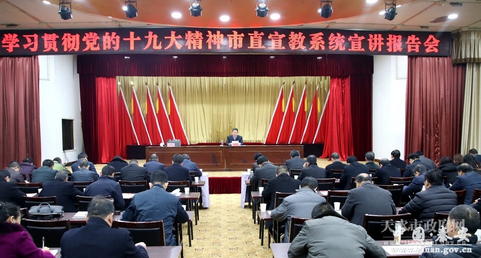 12月13日,天水市委宣讲团成员、副市长张建杰为全市宣教系统党员干部宣讲党的十九大精神。