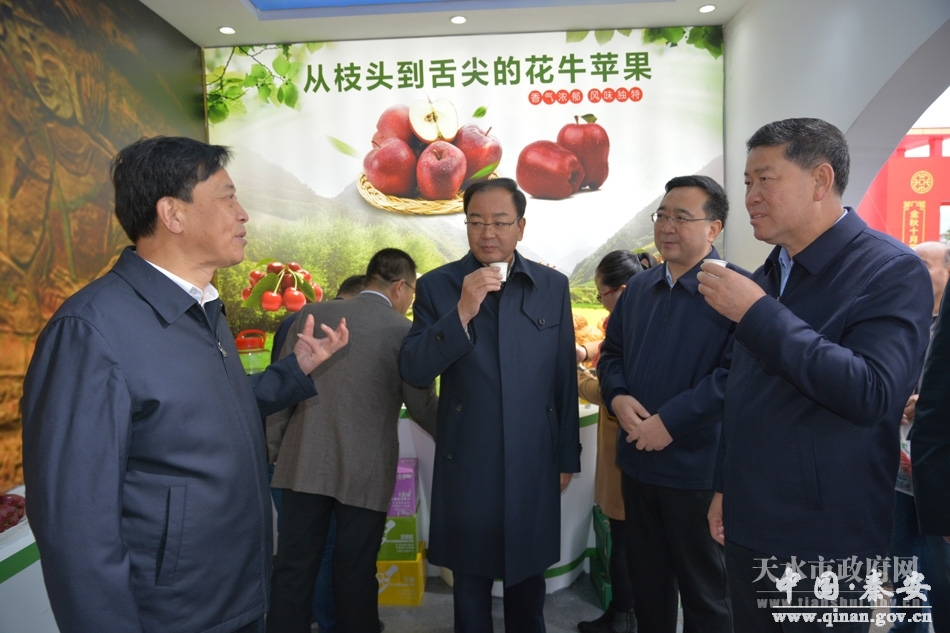 王军说,多年来,天水市坚持把发展以花牛苹果为主的果品产业摆在农业四大百亿元主导产业的首要位置,坚持不懈做大规模、做优品质、做强品牌,实现了基地大发展、产业大聚集、品牌大提升,千家万户、集中连片的苹果已成为实现增收富民、助力脱贫攻坚的主导产业和重要支撑。目前,全市果品面积达350万亩,其中花牛苹果153万亩,今年预计果品总产量将达到300万吨,实现产值100亿元。希望社会各界人士能够继续支持天水发展,多来天水品尝果型优美、味香质优、富含营养的花牛苹果,洽谈合作事宜,携手共谋发展。