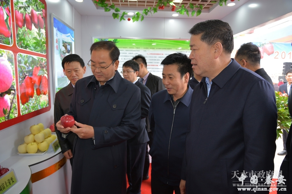 天水市人大常委会主任王光庆,市委副书记、市长王军,市委常委、宣传部部长蒲军,市人大常委会副主任张克强,市政府副市长霍卫平,市政协副主席唐宏伟,市人大常委会秘书长杨坤,市政府秘书长王祥林,麦积区委书记张智明,区人大常委会主任贾应珍,麦积区其他四大组织在家领导一同出席开幕式。市四大组织协调联系副秘书长,市直有关部门主要负责人,各县区党委或政府主要领导、分管领导及林业局、农业局局长,区直有关部门、各乡镇负责人,以及平凉市、庆阳市、陇南市、张掖市、宝鸡市、延安市等有关城市的党政代表,外地有关果品营销企业、超市代表,知名电商代表,中央、省级有关新闻媒体的记者等参加了开幕式。