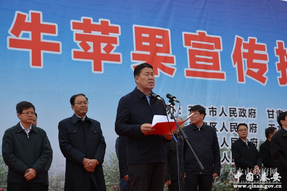 十月的天水,秋高气爽,瓜果飘香。10月16日上午,由天水市人民政府、甘肃省林业厅、甘肃省农牧厅主办,麦积区人民政府、天水市林业局、天水市农业局承办的2017年天水花牛苹果宣传推介活动在麦积区隆重举行。