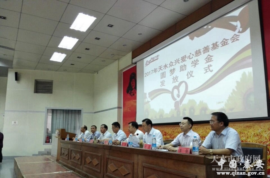 8月24日,天水众兴菌业爱心慈善基金会圆梦助学金发放仪式在天水一中举行,150名贫困生获助学金120万元。副市长张建杰出席活动。