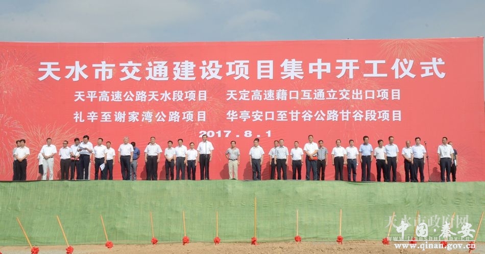 8月1日,天平高速公路天水段、天定高速公路藉口互通立交、省道536线甘谷礼辛至谢家湾公路、省道304线甘谷新兴至金山公路四个项目在秦安县西川镇集中开工。市委常委、常务副市长赵卫东,市人大常委会副主任宋建平,市政协副主席刘永年出席开工仪式。市委常委、秦州区委书记雷鸣主持开工仪式。