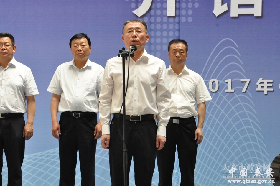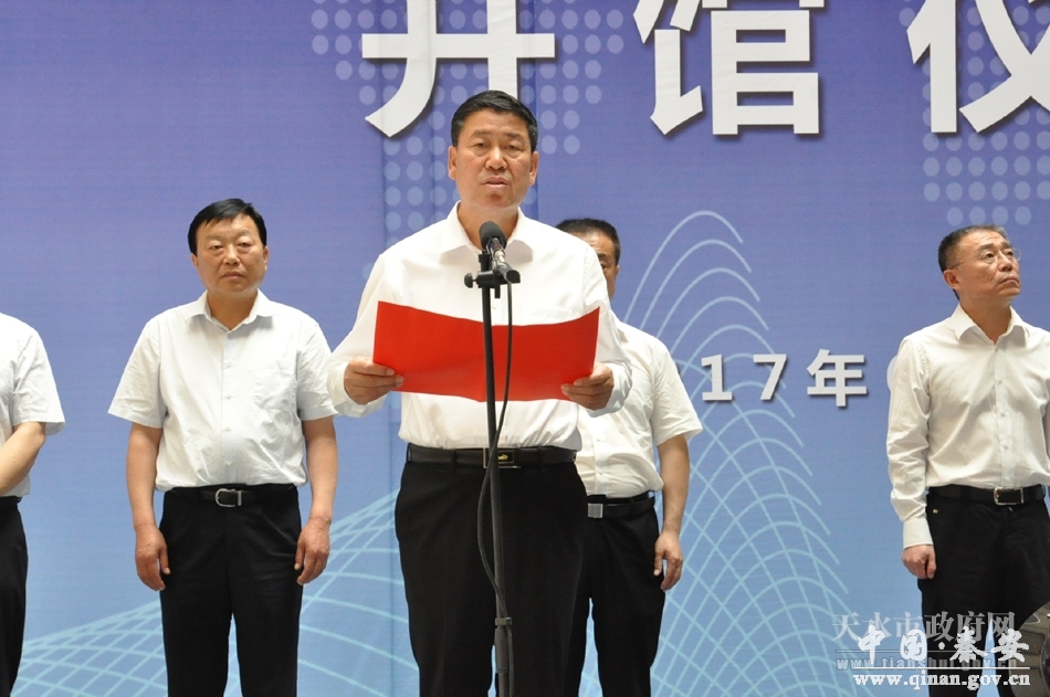 ▲天水市委书记王锐宣布中西部名优新产品暨旅游区域联盟城市旅游商品展开馆
