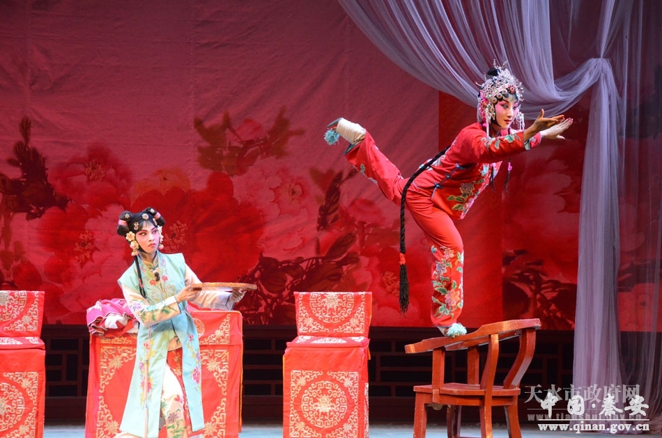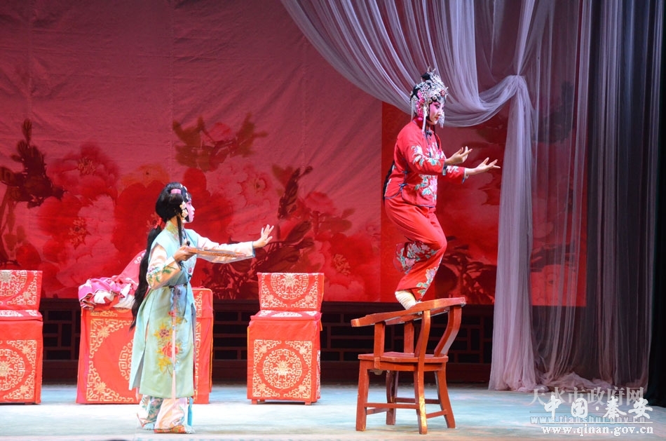 当天晚上,来自我市西秦腔艺术研究院的秦腔表演艺术家们和来自陕西省戏曲研究院的秦腔名角纷纷登场,尤其是陕西省戏曲研究院梅花奖得主张蓓演出的《三堂会》,梅花奖得主边肖和国家三级演员汪宏涛联袂演出的《放饭》等秦腔剧目,让观众大饱眼福和耳福。当晚他们共为天水秦腔戏迷奉献了包括《白逼宫》、《放饭》、《挂画》、《三堂会审》在内的四部秦腔经典剧目。演员们唱腔优美,表演真挚到位,精彩的表演不时引发剧场观众阵阵掌声和喝彩。