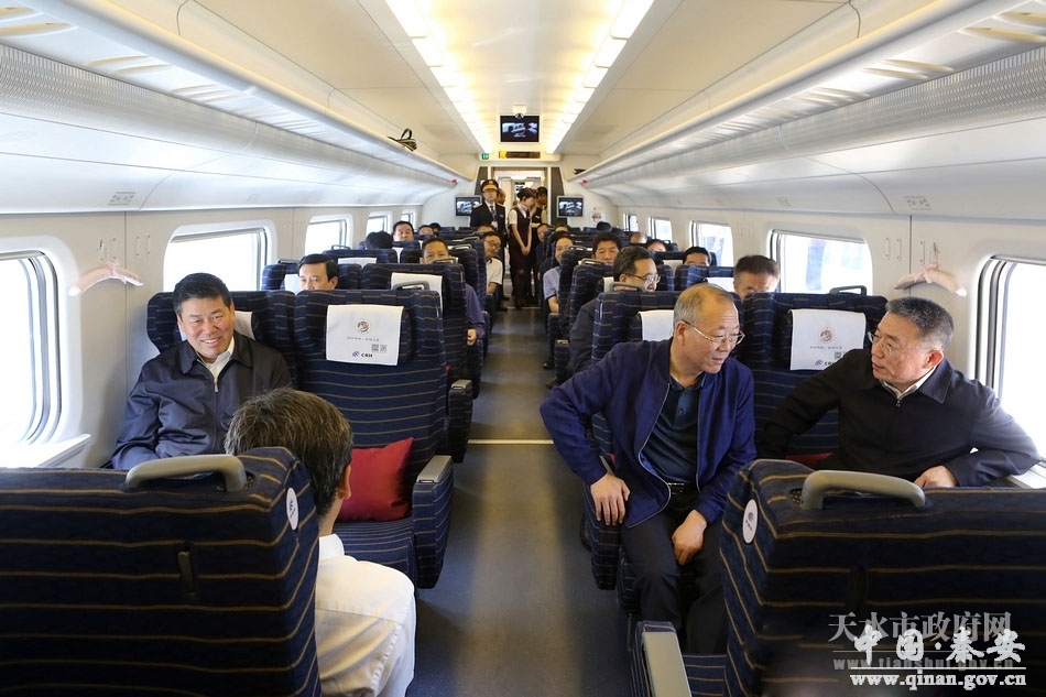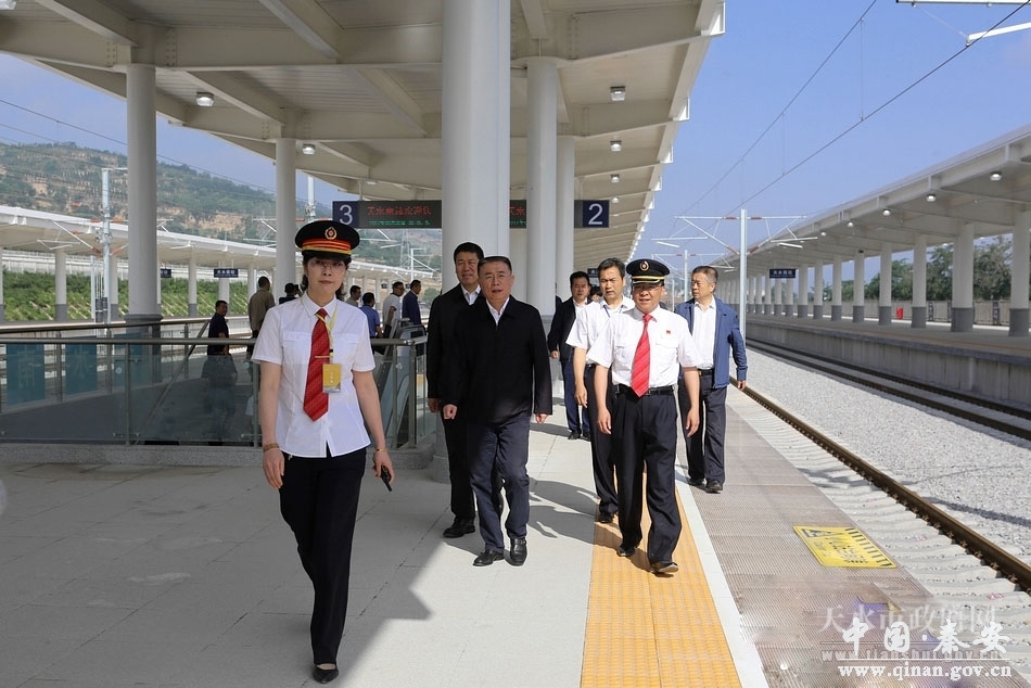 6月6日,市委书记王锐,市委副书记、代市长王军带领市直相关部门及秦州区、麦积区、秦安县负责同志,会同兰新铁路甘青公司负责人,检查宝兰客专天水段沿线环境整治工作,协调解决线路开通运营前存在的困难和问题。王锐、王军强调,宝兰客专的开通,标志着天水市正式迈入“高铁时代”,相关县区和部门要深刻认识宝兰客专开通运营的重要意义,进一步加快铁路沿线环境综合整治和美化亮化工作,努力将宝兰客专天水段建设成为景观带、经济带和展示天水形象的重要窗口,以最佳形象迎接“高铁时代”的到来。