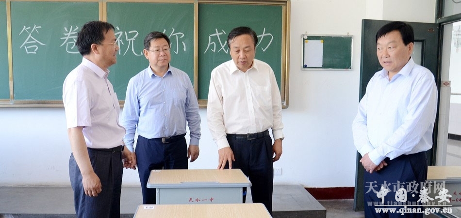 在我市考点天水市一中,郝远先后来到考场、考点办公室及视频监控室,对高考服务保障工作进行了全面了解,并听取了相关部门负责人就全市高考准备情况的汇报。郝远对市一中及我市高考准备工作给予充分肯定。他指出,高考涉及千家万户,关系到每个学生的未来,是全社会关注的热点。各级各有关部门要站在讲政治和维护社会公平正义的高度,以强烈的责任感,切实把考场布置、视频监控、人员培训、安全保障等各项工作做细、做实、做到位,努力营造最公平、最阳光的考试环境。