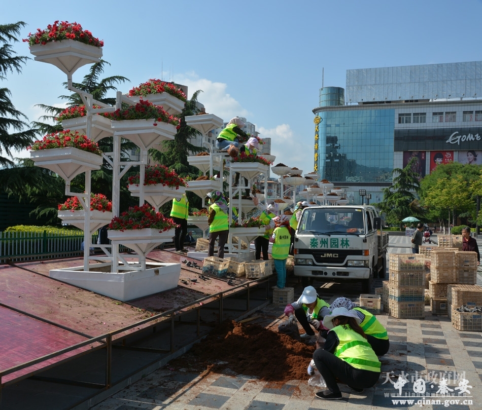 目前,美化工程已经开始,即在“三广场”即龙城广场、文庙小广场、伏羲广场;“两出入口”即秦麦高速出入口、天水西高速公路出入口;“六道路”即民主路、建设路、藉河北路、双桥路、女娲路、伏羲路;“四什字”即青年南北路什字、公园路什字、合作路什字、藉滨大桥什字,摆放时令草花29万盆,博古架花钵6组,圆形花桶40组,方形花箱12组,组合“凸”字型花箱50组,节水组合立体花钵756个,顶盖252个。(天水日报全媒体记者李旺旺/文 天水市政府网巩智刚/图)