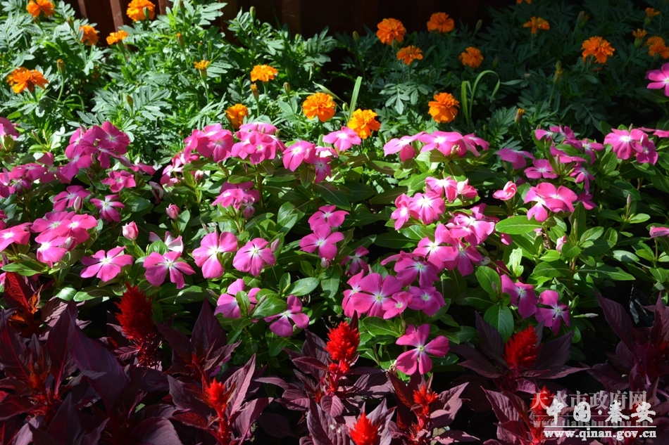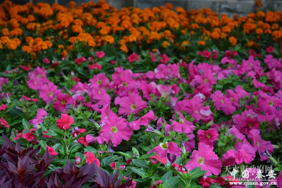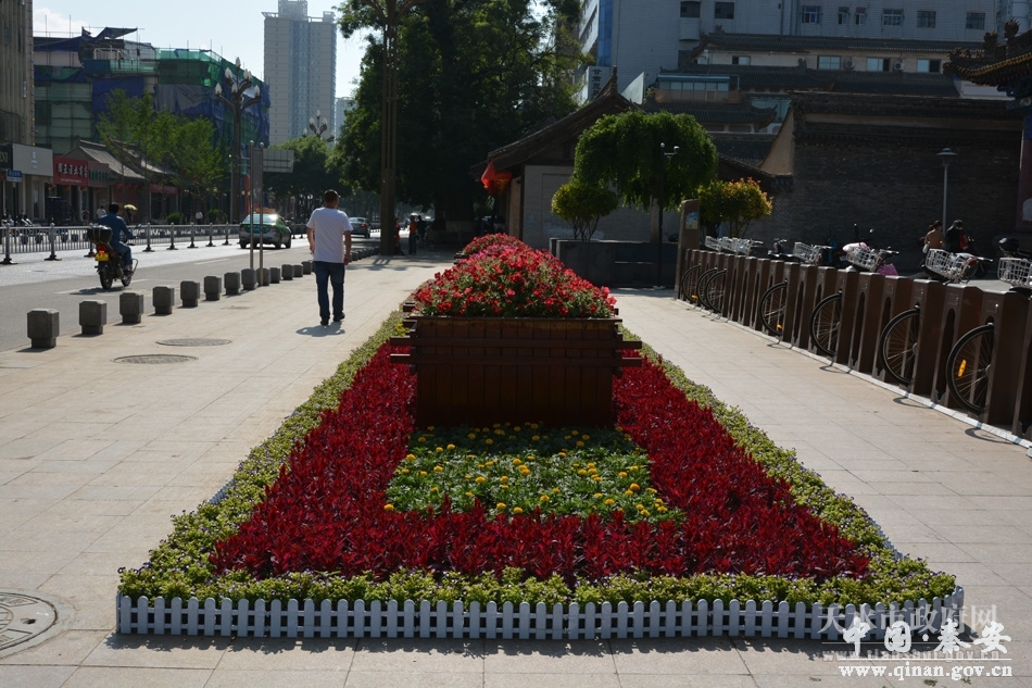 本次美化工程以增色添彩、弘扬文化、扮靓秦州为宗旨,以“缤纷六月、五彩秦州”为设计主题,采用艺术花架、防腐木花箱等表现手法,结合万寿菊、一串红、三色堇、多色矮牵、非洲凤仙等鲜花摆放的色块、色带,构成色彩艳丽、摇曳多姿的景观效果,使整个城区沉浸在喜庆的节日氛围中。