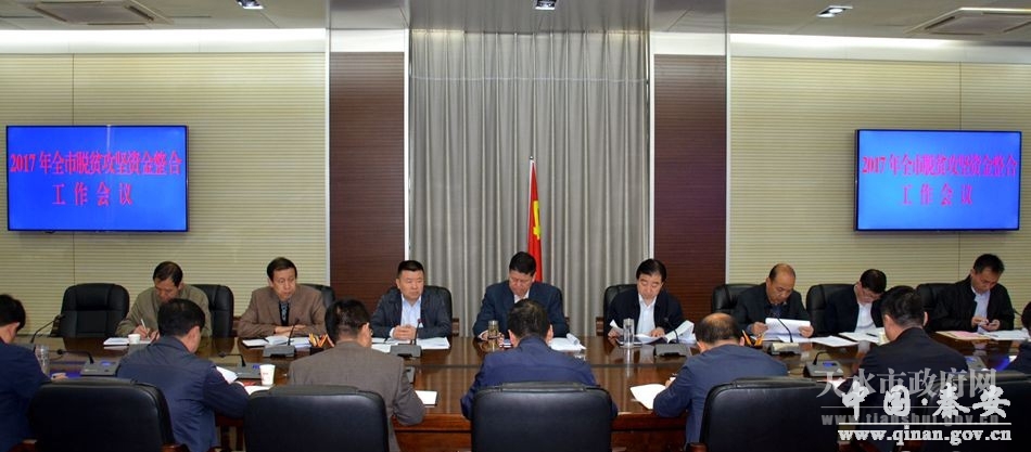 会议贯彻落实中央、省上有关统筹整合使用财政涉农资金的文件会议精神;听取各县区、市直有关部门关于脱贫攻坚资金整合情况的汇报;讨论《2017年市级脱贫攻坚资金整合方案》,对今年全市脱贫攻坚资金进行全面安排部署。