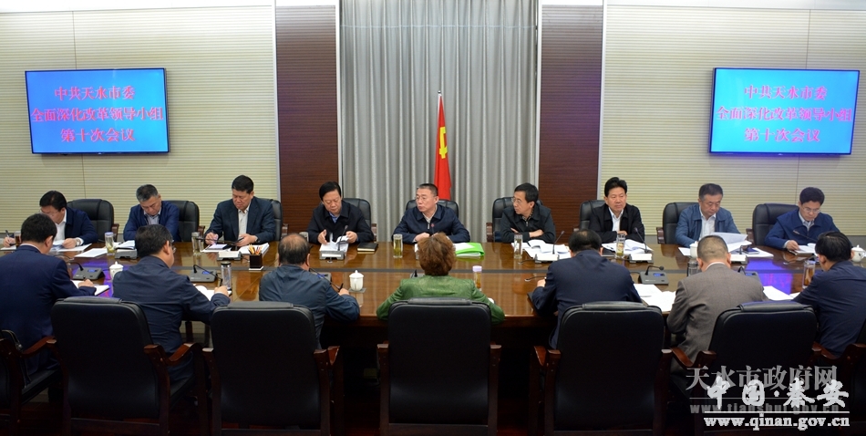 会议传达学习了中央和省委全面深化改革领导小组会议精神、习近平总书记在中央全面深化改革领导小组第33次会议上的重要讲话精神及省委全面深化改革领导小组《关于2016年全面深化改革工作总结的报告》,听取了有关部门和县区主要负责同志抓改革落实情况的汇报,讨论审议了市委全面深化改革领导小组2017年《工作要点》《工作台账》和《关于加强政党协商的实施办法》《天水市民族团结进步创建活动规划纲要(2016—2020年)》,研究部署了今年全市全面深化改革工作。