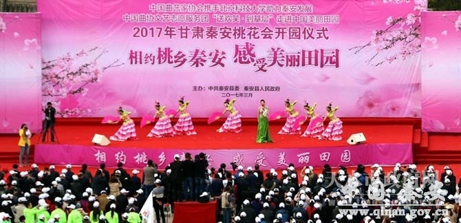 阳春三月,在秦安县葫芦河两岸绵延十公里的山川大地上,数万亩桃园桃花绽放,姹紫嫣红,繁花似锦。远远望去,一片片桃园如同一幅幅美丽壮观的风景图画,把秦安大地装扮得分外妖娆,美不胜收。3月30日,“2017年甘肃秦安桃花会”开园仪式在秦安县兴国文化广场隆重举行。