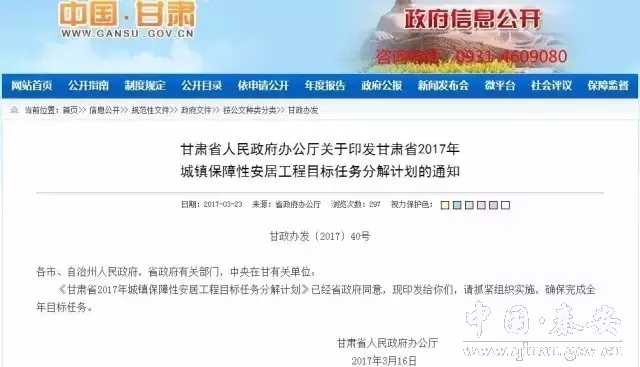 经甘肃省政府同意,省政府办公厅近日印发《甘肃省2017年城镇保障性安居工程目标任务分解计划》(以下简称《计划》)。依据《计划》,甘肃省各市州今年将开工改造城市棚户区166198套(户),基本建成87579套(户)——其中城市棚户区改造80057套(户),公共租赁住房建成(落实货币化补贴)7522套(户)。