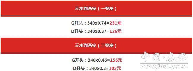 天水——西安二等座票价也将维持在100元左右,运行时间为1小时40分钟。