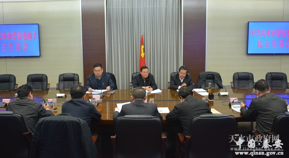 2017年1月22日,天水市委常委班子召开2016年度民主生活会。会议以学习贯彻党的十八届六中全会精神为主题,围绕“两学一做”学习教育要求,重点对照《关于新形势下党内政治生活的若干准则》和《中国共产党党内监督条例》,联系市委常委会工作和党的十八大以来抓作风建设的实际,联系自身执行中央八项规定精神的实际,进行自我检查、党性分析,严肃认真地开展批评和自我批评,切实增强常委班子和常委个人发现解决自身问题的能力,推动形成积极向上、干事创业、风清气正的政治生态,扎实推进改革发展稳定各项工作。