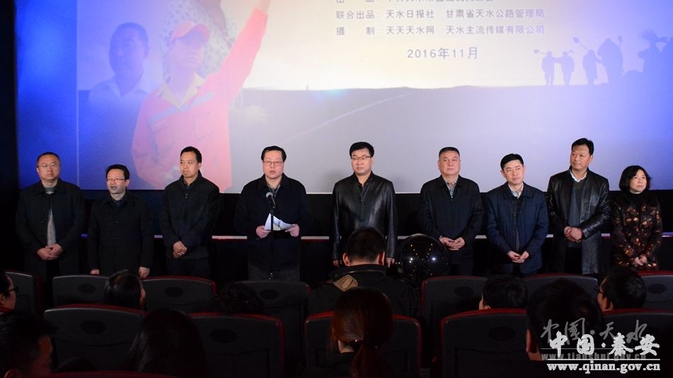 王正茂在首映礼开幕仪式上首先代表市委,市政府对这部电影的放映表示热烈祝贺,他说;公路系统养路工人是一个特殊的群体,也是一个英雄的群体,是一个奉献的群体,他们中间有许多感人至深的故事,但是长期以来,这个群体被社会遗忘,这一部由市直机关工委,天水日报社、甘肃省天水公路管理局联合出品,天天天水网、天水主流传媒有限公司摄制的微电影《一路上有你》,主要通过微电影这种方式,全面反映了三代养路工人的悲欢离合,喜怒哀乐,观看后,对养路工人这个群体充满了敬意,同时对他们奉献精神和牺牲精神也充满了同情,希望大家通过观看影片,对这样的群体能够引起社会关注,在大家享受社会发展成果的同时,不要忘记有这么一群人在我们身后默默奉献。这部影片正因为他的选材比较独特,而且出演的演员大多都是工作在一线的养路工人,所以非常感人,近日还在第三届中国报业新媒体大会中国报业短视频微电影大赛上获得优秀微电影奖。希望各个行业能够挖掘出这样典型事迹,典型人物,通过新媒体的手段,能把我们这些充满正能量的故事,人物都能够宣传出去,让他们成为目前社会的主流,成为弘扬主旋律,传播正能量的一支重要力量。目前全市各单位正在开展“两学一做”活动,希望各单位党组织能够组织广大党员干部观看学习。
