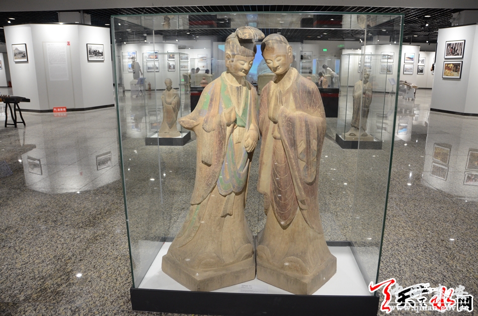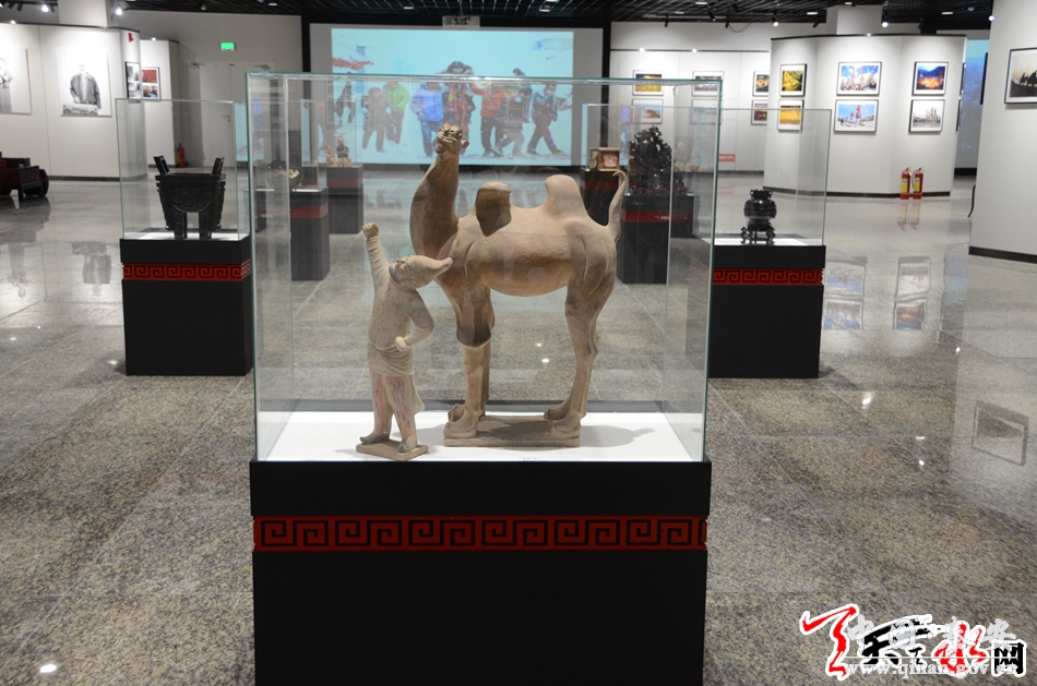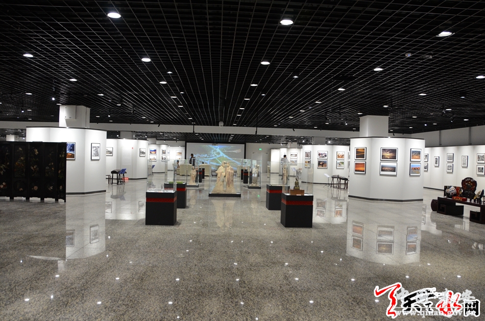 在位于敦煌国际会展中心C区,由我市和省摄影家协会共同主办的“影像丝路--国际摄影艺术作品展”展厅布局大方、典雅。占地1500多平方米的展厅内,除了四壁和设计别致的立柱上展出由马克·吕布、王庆松、陈农等国内外摄影大师的200余幅摄影作品和影像丝路天水摄影双年展主题展部分优秀作品之外,还整齐有序地在展厅布置了麦积山石窟雕塑、大地湾陶器、马家塬战国墓葬出土文物和天水雕漆、鸳鸯玉器、天水竹雕、天水泥塑、天水古琴、天水古筝等具有“天水元素”的文化艺术作品130多件。除此之外,在以“华夏文明在甘肃”为主题的甘肃展馆内,代表我市伏羲文化、麦积山文化、大地湾文化、雕漆文化等的70多件文化文物精品在展厅显著位置予以展示。所有这些文化文物精品,都以其代表的悠久历史、反映的丰厚文化信息和自身精致的艺术工艺吸引了众多与会中外嘉宾的眼球。