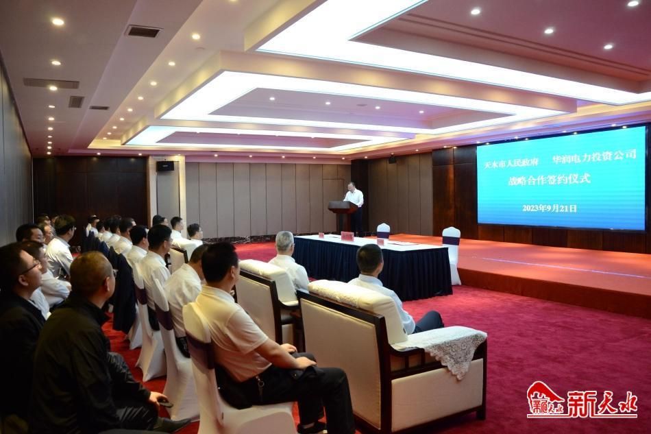 9月21日,天水市人民政府和华润电力新能源投资公司签订合作框架协议。 市委副书记、市长王国先,华润电力中西大区总经理张小宇出席签约仪式。副市长胡志勇代表市政府与华润电力甘肃公司总经理杨召伟签订框架协议。市委常委、常务副市长贾义翔主持签约仪式。