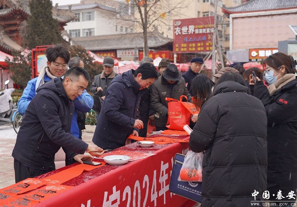 “无联不成春,有联春更浓”。随着春节临近,为营造浓厚节日氛围,弘扬中华优秀传统文化,营造文明健康、快乐祥和的新年氛围。2月2日,秦安县文联联合县博物馆、图书馆、文化馆在兴国文化广场举办2024年送福送春联文化惠民活动。