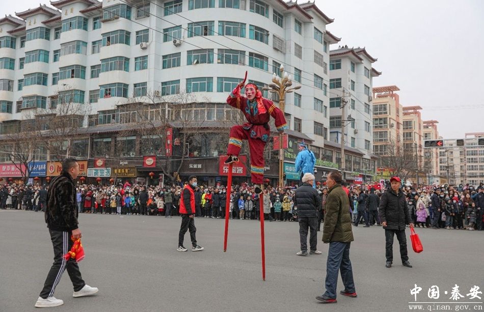 声声锣鼓激荡盛世豪情,阵阵舞步跳出新春华章。2月22日,农历正月十三,秦安县2024年春节社火汇演在主城区街道拉开了帷幕。来自各镇、各行业的表演队身着盛装,载歌载舞,欢度新春,舞龙舞狮、扭秧歌、跑旱船、耍腰鼓……精彩纷呈的演出为广大群众奉献了一场年味十足的民俗文化盛宴。