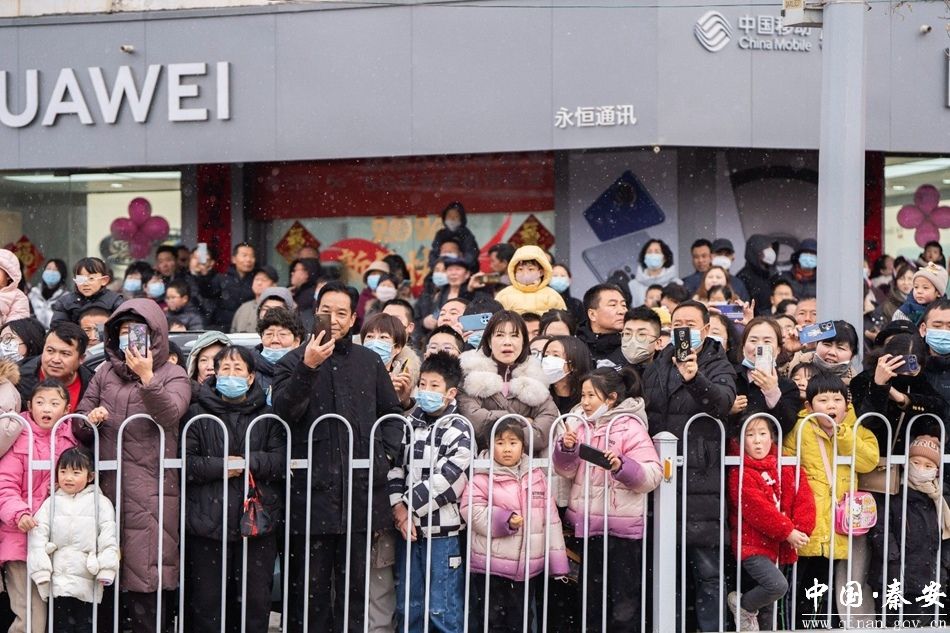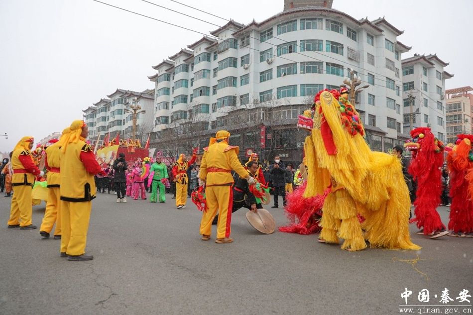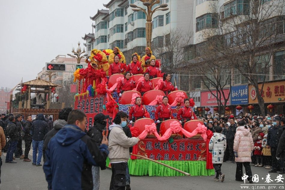 上午9时,来自莲花镇、五营镇、陇城镇、郭嘉镇、秦安血浆站等17个镇5个行业企业的1300余名队员们伴着寒风雪花,以特有的喜庆方式向全县群众拜年,为全县各族群众送上了一份别具特色的新年礼物。