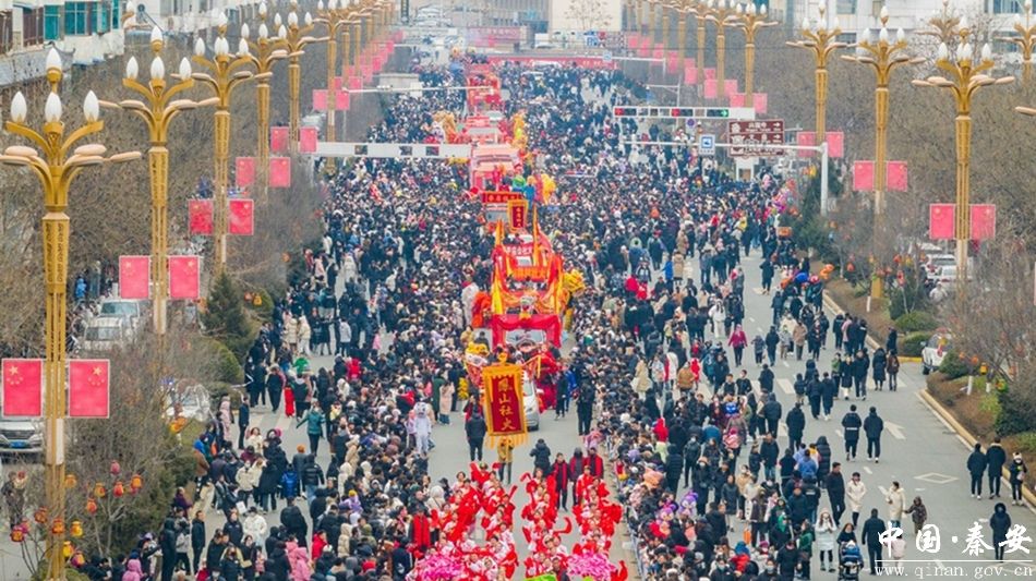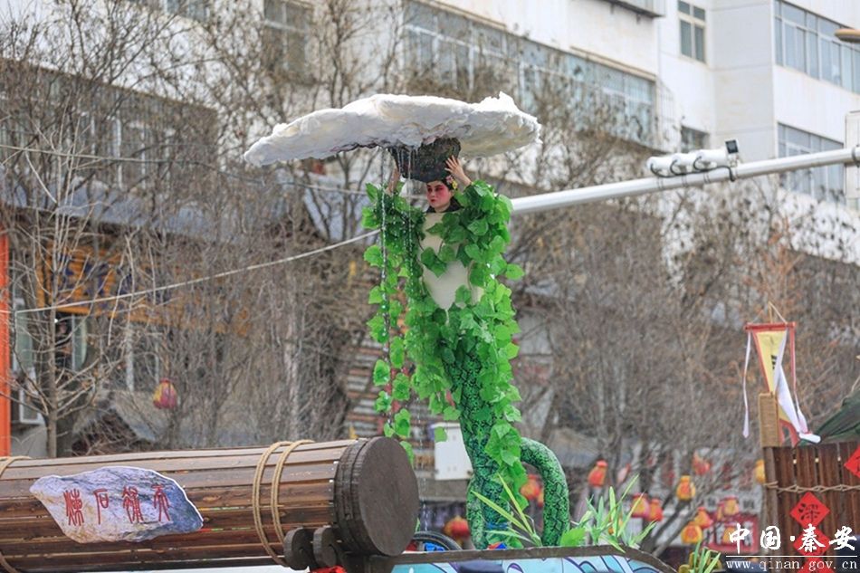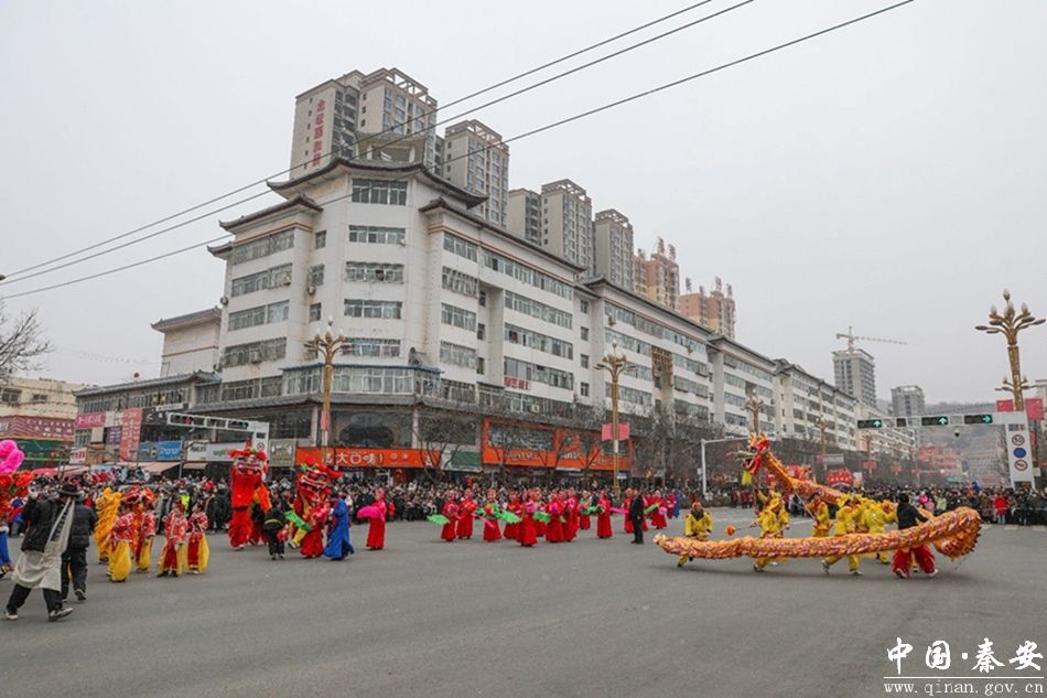 春意未萌,寒意料峭。当天,秦安县城各主要干道人山人海、锣鼓喧天、欢声鼎沸,成千上万名城乡群众从四面八方涌来,争相观看这一最接地气、最具年味的民间艺术表演。17镇及相关行业企业的社火展演队伍带着新春的问候和祝福,整装齐聚,隆重登场。他们扭秧歌、舞长龙、耍狮子、划旱船、踩高跷,合着锣鼓的节奏,扭着欢快的舞步尽情地表演着。威武雄壮的锣鼓、上下翻飞的彩扇、欢腾跳跃的舞狮以及经典的扮相、幽默的互动,为群众带来无限的欢乐。还有各具风格装饰彩车,充分展示近年来秦安县经济社会各项事业蓬勃发展取得的丰硕成果,展现智慧勤劳、崇文重教、诚信包容、敢为人先的秦安人民幸福和谐的生活状态,尽显文明乐观、人文之城的风采。