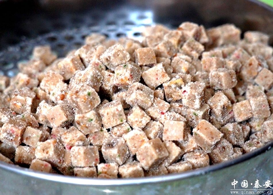 “南方包汤圆,北方滚元宵”,都说元宵是“滚”出来的,那具体是怎么“滚”的呢?走进秦安传统老字号“孟记元宵店”,孟师傅正手法娴熟地加急制作元宵,忙得不亦乐乎。只见他将提前准备好的馅料块,沾上水,多个一批,一并放入装有糯米粉的盆子里,不断晃动、相互碰撞,待大小几乎不变后,元宵的雏形就出现了。再蘸上水,二次开滚,元宵包裹着更多的粉料逐渐充实起来。稍后第三次蘸水,进行三滚、四滚……直至馅料在互相撞击中滚成瓷实的圆球就算完成了。经过不断碰撞滚出来的元宵,外表虽然粗糙,但口感松软劲道,水分较少,所以煮的过程中会在汤里融入一些糯米粉,喝起来有米汤的香气和醇厚口感。