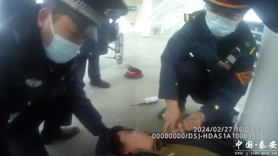 2月27日,在秦安高铁站站台上,一位旅客突然晕倒,车站客运员紧急救助,上演了一场与“死神”赛跑的生死时速。