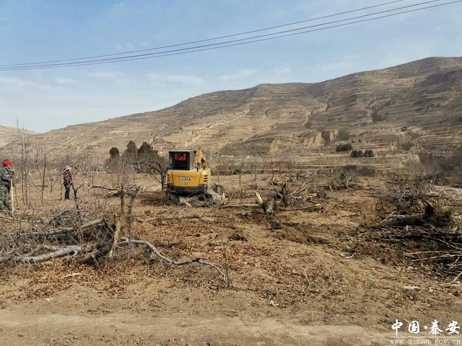 近日,在秦安县王铺镇曹湾村田间地头,人头攒动、机器轰鸣,伴随着挖掘机的轰鸣声,一棵棵品种老旧、产量低下的衰老果树缓缓倒下,果农们在园中忙碌着扛大枝、抬树根,一派繁忙的景象,全镇老果园改造工作全面铺开。