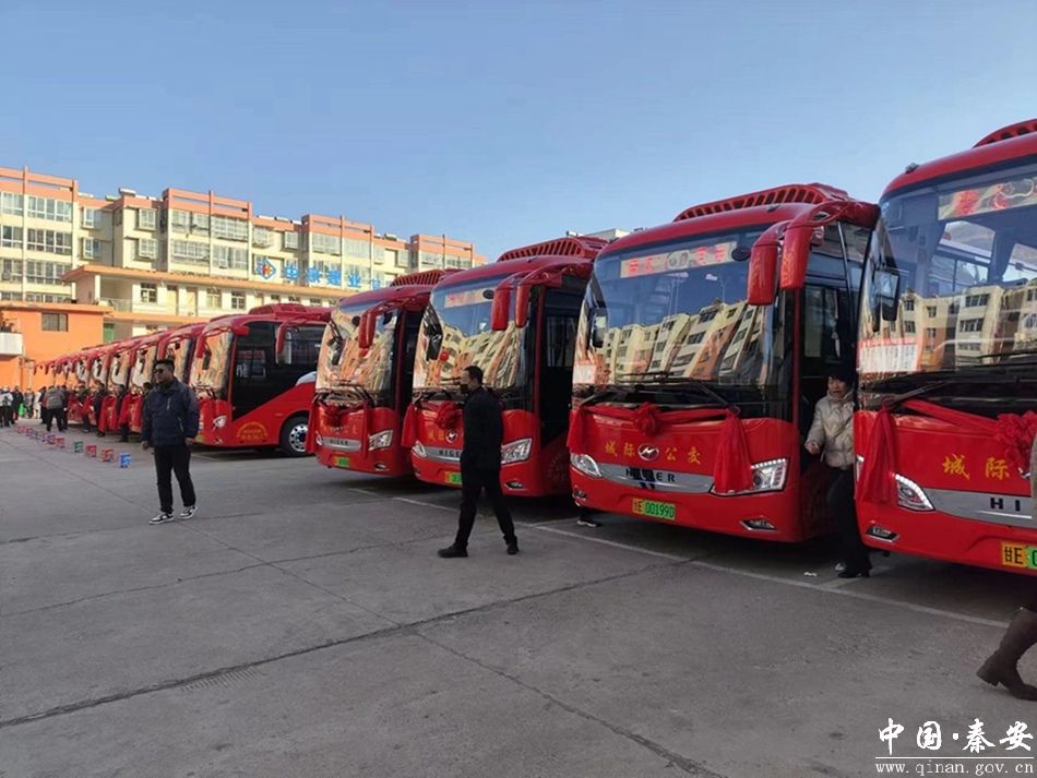 秦安至天水城际公交,拥有新能源纯电动大客车12辆,于2023年12月4日正式投入运营,每20分钟1班、票价10元,以高密度、低票价运作,极大地方便了广大人民群众出行。截至3月5日,累计客运量达到10.03万人次。