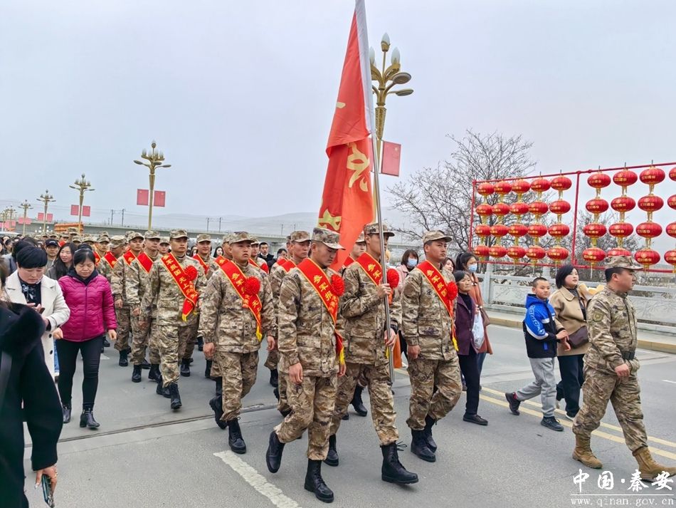 据了解,此次新兵欢送活动,采取县镇两级联动,17镇同步发力,充分结合自身优势,各镇党委书记亲自主持,组织座谈会、茶话会、文艺汇演、上街巡礼、发放光荣军属牌等各具有鲜明秦安特色的新兵欢送活动,在全社会营造“一人当兵,全家光荣”的爱国拥军氛围,为强国兴军贡献秦安力量。