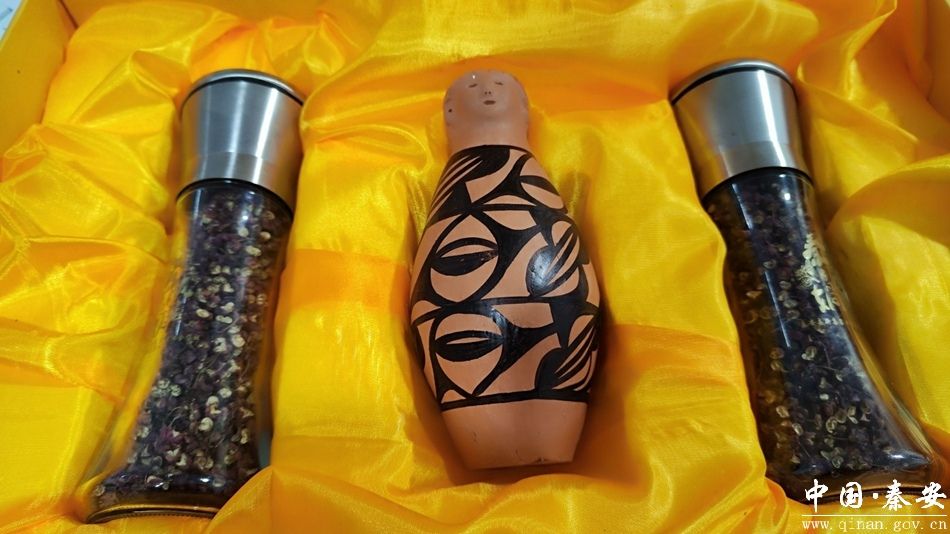 展销会现场,千户大红袍花椒、七月菊、云岭土蜂蜜、花椒芽菜辣酱、秦陇娲皇酒等农副产品吸引了许多游客前来询问、购买,展销区人头攒动,格外热闹。最引人注目的是由千户新集果业农民专业合作社研制出品的文创产品“秦陇娲皇”花椒礼盒,不少游客感叹“这不是简单的卖产品,这更是让8000年的大地湾文化活起来了”。