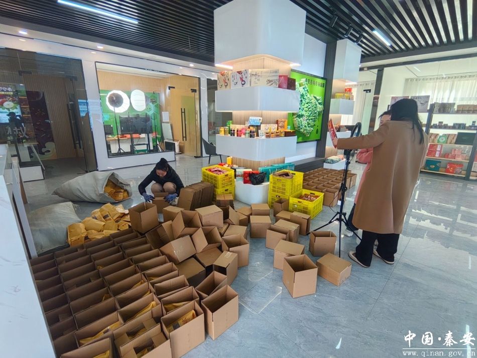 郭嘉镇各电商平台近日订单销量猛增,基地工作人员也是热火朝天地边直播边打包。“截至目前,各平台累计销售10.81万元,其中苹果3.4万元,花椒4.1万元,其他3.81万元。”郭嘉镇电商直播基地相关负责人说。