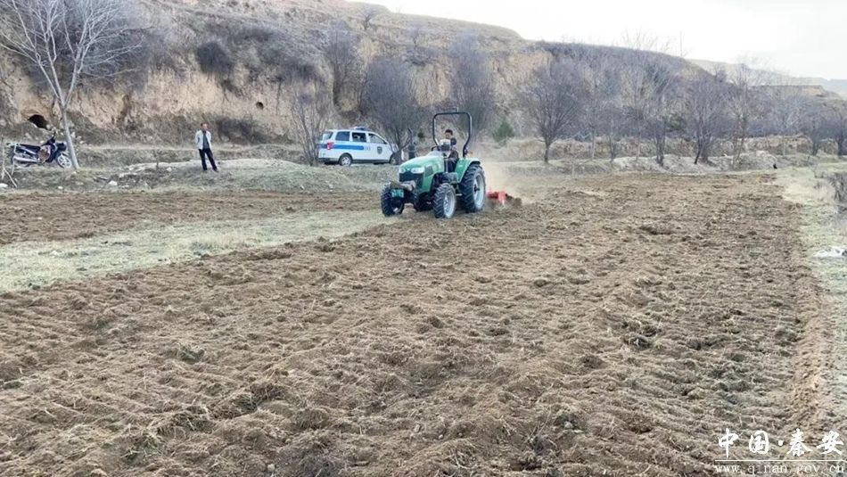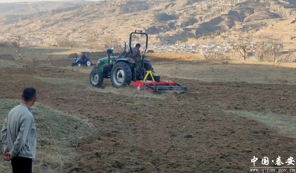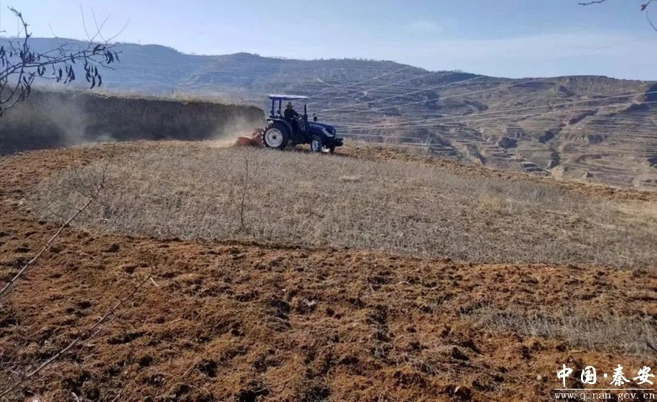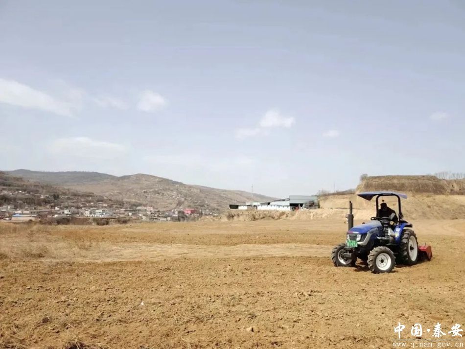 一场春雨过后,眼下正是春耕生产的大好时节。近日,在秦安县王尹镇尹川村南山湾的连片撂荒地里,两台旋耕机来回作业平整土地,一台挖掘机挥舞巨臂调整地形,在短短的一上午时间,近60亩杂草丛生的荒地,变得平整而宽阔。